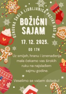 Učitelji i učenici naše škole organizirali su prigodni božićni sajam i priredbu povodom nadolazećih blagdana. Svi posjetitelji mogli su uživati u plesu, pjesmama, poeziji i igrokazu koji su izvodili naši učenici. U ponudi naše školske zadruge našli su se brojni blagdanski ukrasi i slastice koje su pripremile vrijedne i kreativne ruke naših učenika.